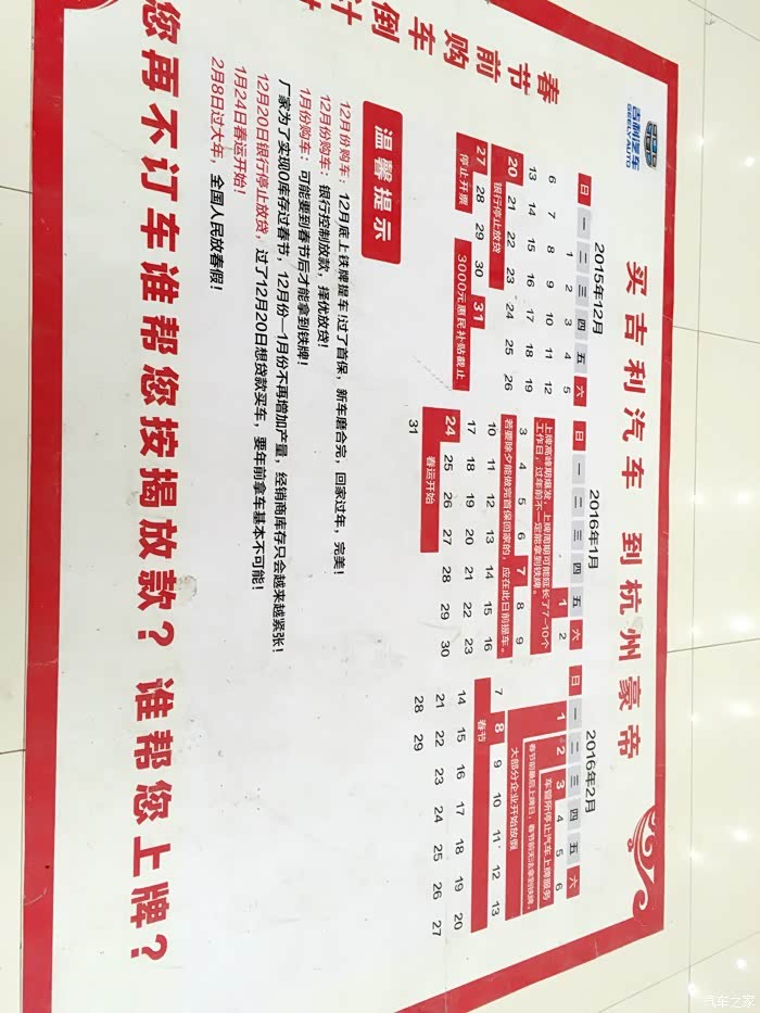 11月21日再次來到這里,哥決定收了它!接下來便渡过了一个月的等待?当前天听到我的车到了,提车前一晚失眠了,人生第一辆车,那个兴奋啊!于是昨天特意請假一天去把心爱的车车开回家。來到店前第一眼便看到了它,博瑞紅色,大门前车子很多,顏色各异,唯独紅色是那么刺眼,目前白色已經泛濫了,路上车太多了。為什麼選擇紅色,只能说明口味重吧!