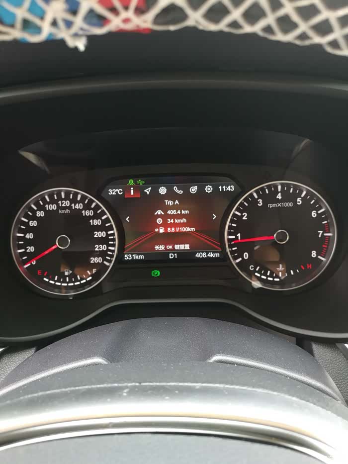这个是复位后,跑了大概400公里的油耗,其中,各种堵,红绿灯,早高峰等等状况都在里面,但是,不是全程开空调,因为还在透气中,我不喜欢新车的味道,任何新车的味道。