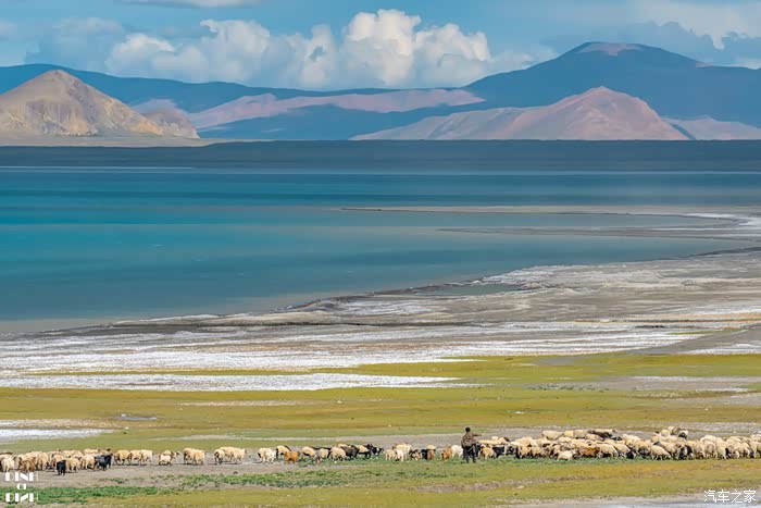 看到岸边的一圈白色,就知道这是个咸水湖了。自从听说藏族在没有办法天葬的情况下,会举行水葬后,我就没尝过路过的每一湾湖水。