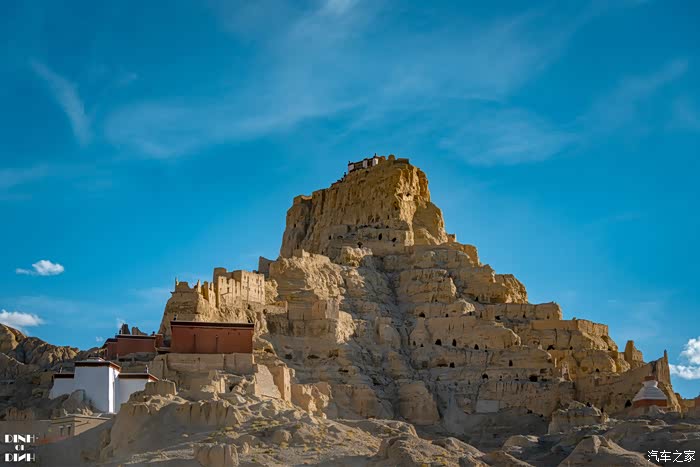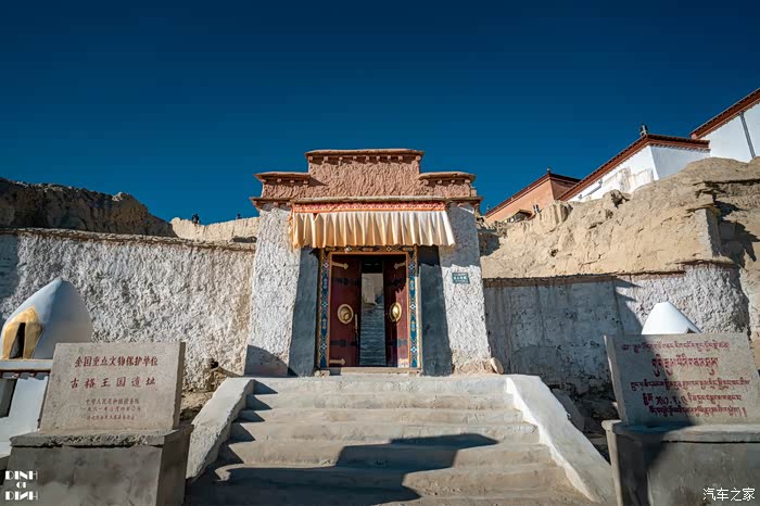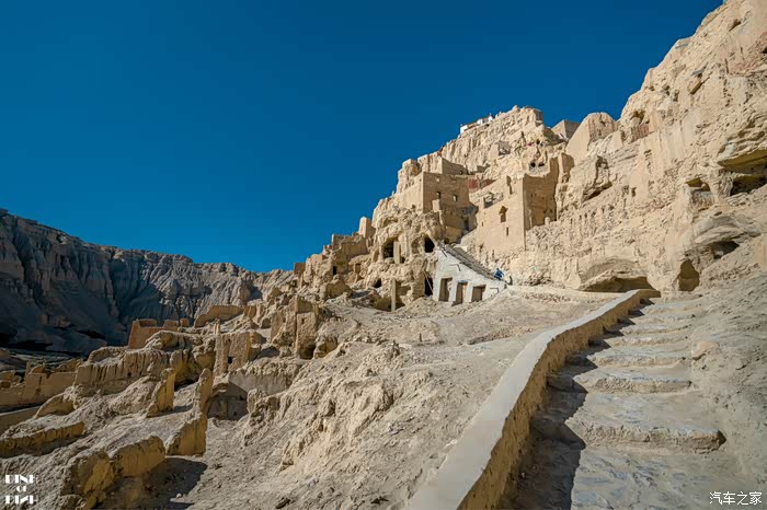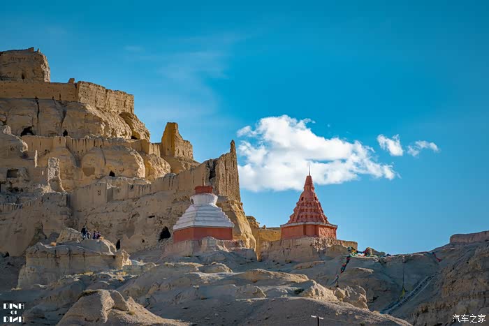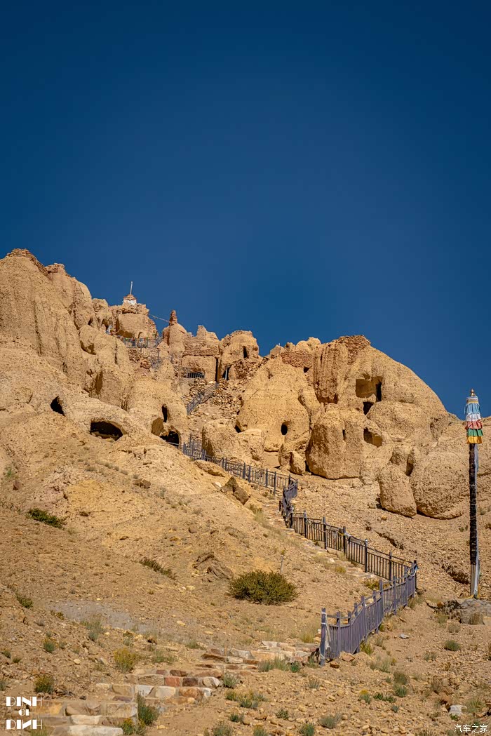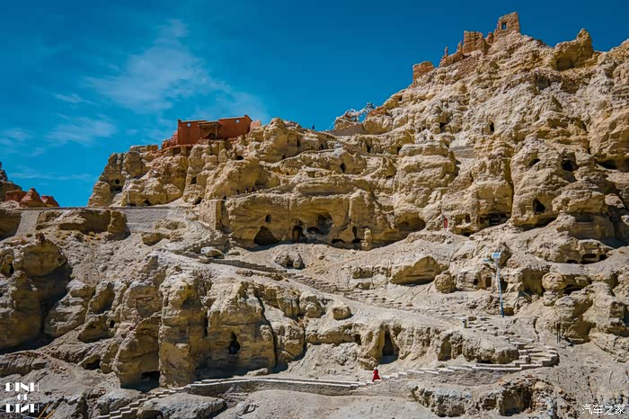 古格遗址依山而建,从山脚到山顶高300余米。有房屋、佛塔和洞窟等600余座。保存较好的有寺庙、殿堂5座,分别是白殿、红殿、大威德殿、度母殿、坛城殿。当天只有红殿是开门的,所有的殿内是禁止拍照的,所以没有照片。在山脚就可以清晰的看到山上的各个大殿。这座山的建筑都保存的比较完好。和隐藏在土林里的穹窿银城比,大气很多。