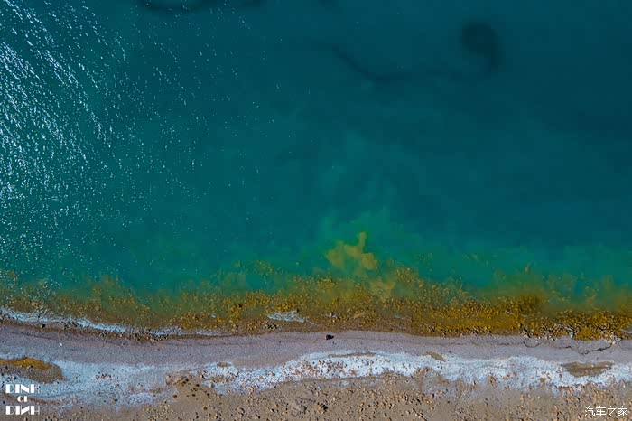 在空中俯瞰,湖水的颜色居然那么有层次,深蓝、浅蓝、翠兰、翠绿、黄、白、棕,一层一层的过渡着。