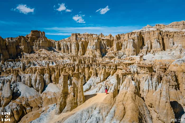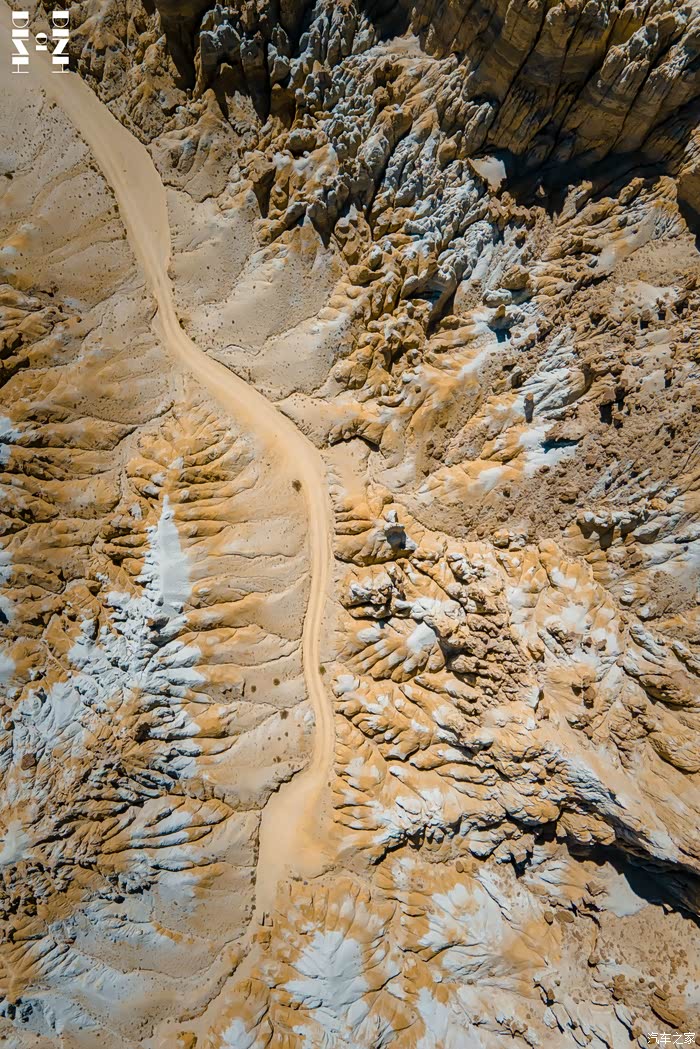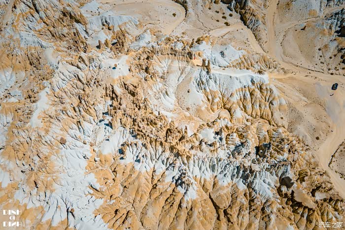 空中俯瞰有种奶油融化了的感觉。有些比较“矮”的土林,“融化”了以后像是佛手瓜的形状。一条越野路将土林一分为二。