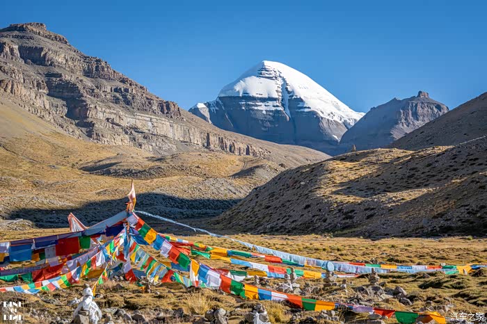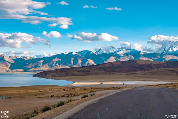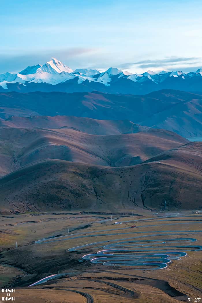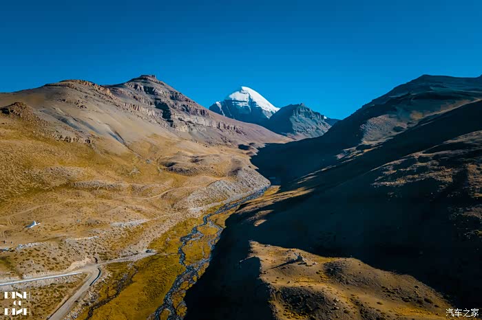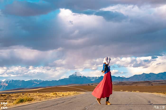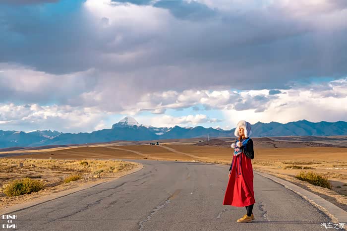 公路的两边都是雪山,伴着西下的日头,一面是圣山冈仁波齐,一面是纳姆那尼峰,忍不住来了一组公路大片。