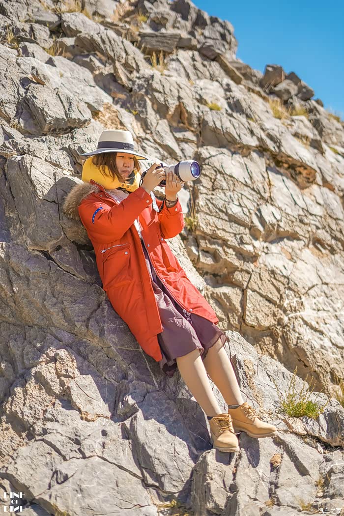 在山上的风还是很大的,我们下车都要穿羽绒服,拍人的时候才把外套脱掉。