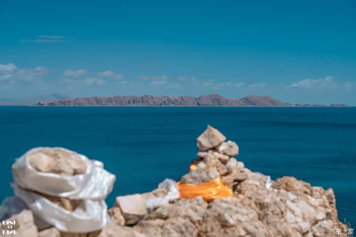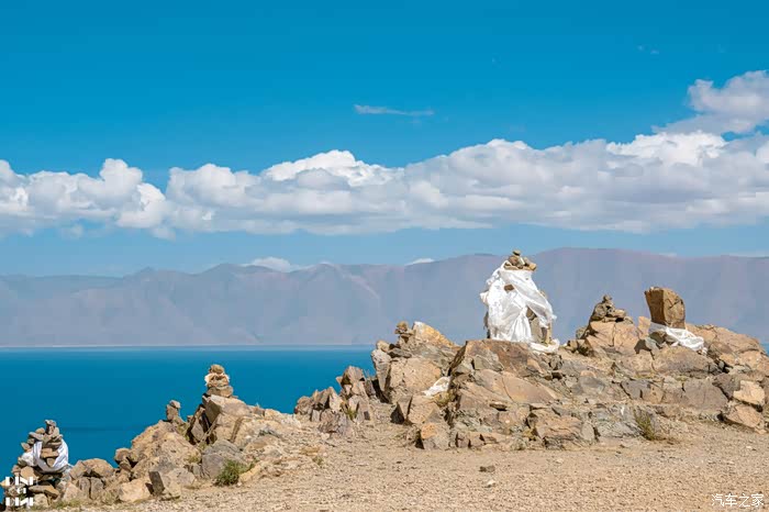 湖边的另一处景观台,有经幡,有玛尼堆,可能还有牦牛。