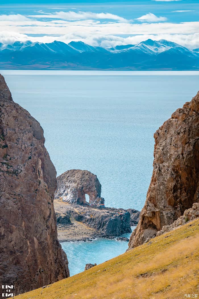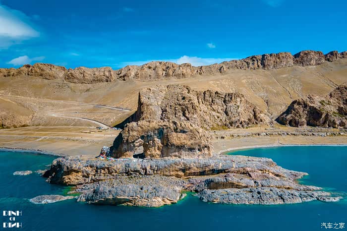 延伸到湖中的一个凸起的小高低,这块凸起的巨石也是仁青休布措名字的由来,它距离公路还有1公里多,我们在这个点拍了照就没过去。