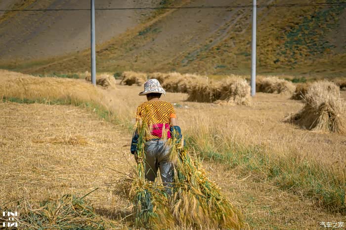 门票:免费海拔:4250米游玩时间:1小时坐标:日喀则市江孜县进入日喀则后,渐渐的沿路就开始看到农田了,9月中旬正好是藏民秋收的季节。沿路开过好多正在农忙的田间,看着热火朝天的收割景象,我们也想凑个热闹去。于是让张哥在一片田间停了一下。下车还没走到田间,听到有人叫我,一回头,这俩已经摆好pose等我拍照了。果然是田间的劳作小能手啊。