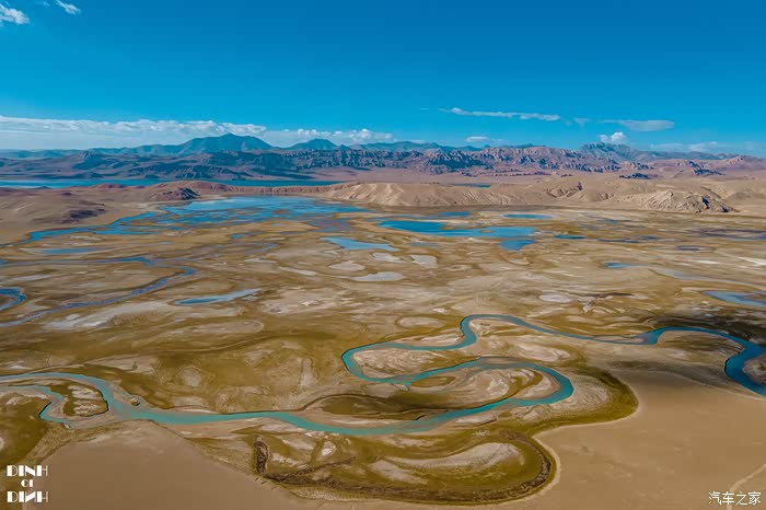 317国道的路上,看到有着一片像戈壁一样,还有各种弯弯的小溪,申请停了15分钟的车,飞了段航拍。