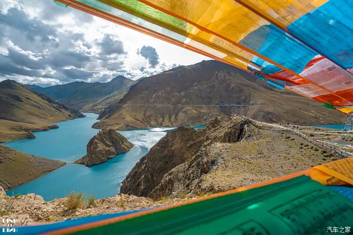 满拉水库有西藏第一坝的美称,观景平台在山顶,挂满了一整座山的经幡,风吹来,似乎一整座山都在向你咆哮。到山顶一看,这哪里像水库,在我们南方,水库也是常见的,主要业务是蓄水、灌溉、发电,还有防洪,人家都靠着业务能力而不是颜值,但是这满拉水库和一路上路过的湖太像了,阳光一照像一块蓝绿的翡翠,只想揣进怀里带走。