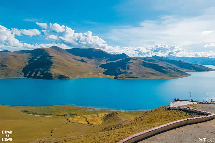 门票:免费(有景观台收费的,我们去的是山腰,就收了5块的停车费)海拔:4441米游玩时间:1小时坐标:山南市贡嘎县307省道有四个观景台(岗巴拉山上看全景2个,羊湖边2个)离拉萨最近的圣湖,也是喜马拉雅山北麓最大的内陆湖泊,它的面积等于70个杭州西湖。车在停车场停稳后,门一开,一股子风吹进车里,一只腿刚刚迈下去,立马觉得感觉不对了,葡萄糖和高原维能各干了一支,然后就被搀扶着往景观台走。毫不客气的说,那时候我腿肚子都在抖着,整个人因为高反喘不上气,就这样走一步歇一步的挪到了最高点,越过土坡,眼前的湛蓝的湖水似乎有那么一瞬间治愈了我的高反。我又慢慢往平台的方向挪了一下,到达羊湖的时候大概是下午四点,光线开始有些逆光,但是好在影响不是很大。小伙伴们都没事人一样跑下了景观台,我走了一半,看着这也只有3-4层楼的楼梯犯难,下得去上不来,于是在台阶上坐了下来,大口喘着气看着眼前的湛蓝。心里想着,我的阿里之路就这样开始了,和我预计的一样,又爱又恨的开始了。