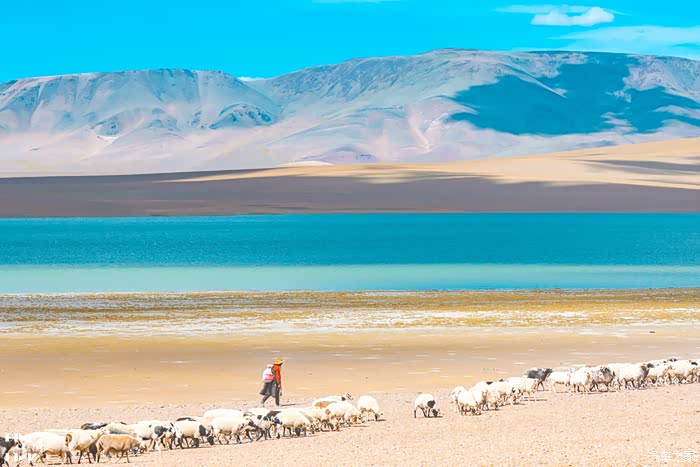 【羊】虽然不是野生动物,但是藏区的羊也是一道靓丽的风景线啊,在湖边遇到赶羊回家的牧羊人