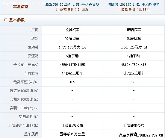 最近身边很多朋友都在期待腾翼C50现车的到来。就像那时期待瑞麒G3上市一样的激动。我呆的地方在重庆的一个地区。这边的C50现车到店很晚。一直到上周末C50的现车才到,加上我平时工作有点小忙,所以一直没去长城的4S店看车,以及了解该车,对于C50的了解都是从汽车之家和论坛各位大侠的帖子而来。所以今天要给大家对比的这两款车,C50的图片大多是从网上来的,G3的图片都是自己拍的,还请大家见谅。