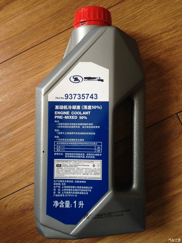 如果你在网上搜索DEX-COOL,会有很多品牌,选哪个其实都差不多,不用太纠结。DEX-COOL是长效防冻液,鉴于前年去东北不怕冷,去年去西藏不怕热,现在只是发现蒸发掉了一些,所以我只买了1L原厂的补充装。自己加进去完事。