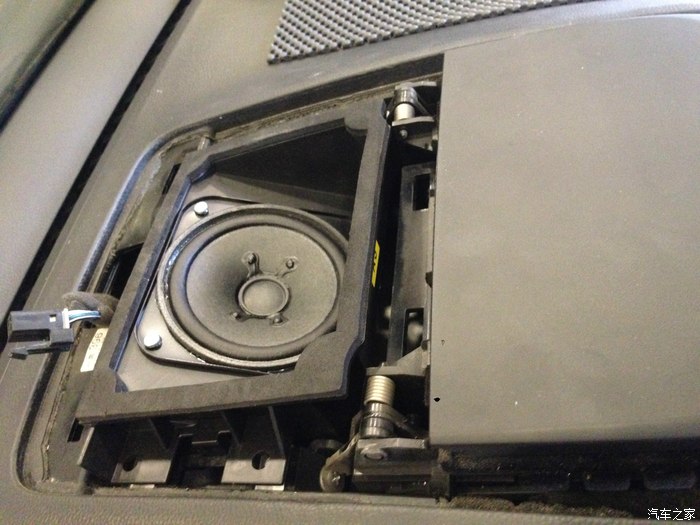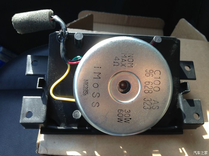 喇叭号称原厂减配的,确实原车位安装,还带插头但用不上,因为CD主机是两声道的,并没有单独给中置喇叭的输出,所以只能破线接到左或者右声道上。