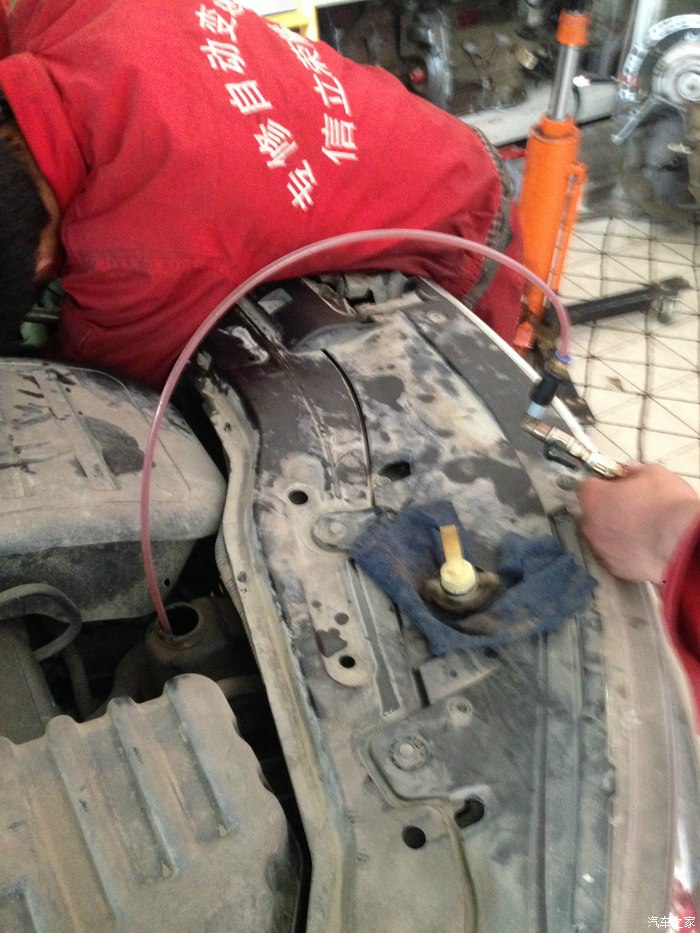 但就是这么简单的一个更换过程,工人也能偷工减料,并没有用新油把管路里的旧油完全顶出来,只是简单放气,就完工了。1L一桶的刹车油只用了三分之一,我也懒得跟他们废话,回家把千里马开过来又把千里马的刹车油和离合器油都换了,也没用完这桶油。也是,按他们这种换法,一桶油能换3-5辆车。