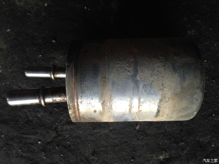 好不容易拆下来了,赶紧好奇的擦掉附着在上面的泥土,查看品牌型号。结果让我惊呆了,“made in china”我只看得懂这几个字。没有品牌,也没有型号,只有一串备件号和生产日期。我的车可是2011年11月韩国出厂整车进口到中国的啊!然而这个汽滤的生产日期是2011年5月。水落石出了,只有两种可能,第一、配件先出口,韩国组装再进口,这种可能性较小;第二、整车进口后,上海通用自行改装,这种可能性极大。第三、11款已经国产了,中国组装好海上转一圈,不敢想了……因为科帕奇太多配件与别克GL8、新君威、新君越通用,所以改改这个不算什么,从油箱里接根管子就OK了。只是说明书不改就太坑人了。