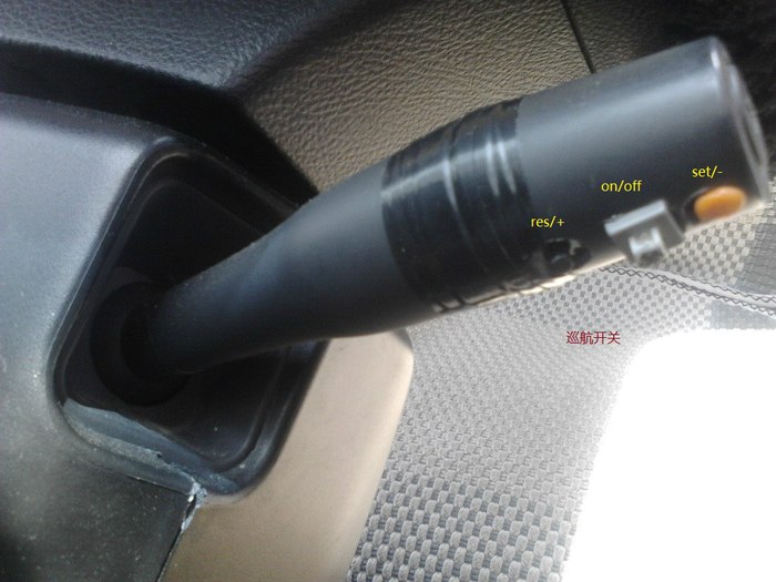 3.巡航哥的精简版执行器,没调刹车开关,安上就能用。一开始用变速箱灯和手柄操作,可不太方便。于是自制三个巡航开关(我很丑,可是我很实用),
