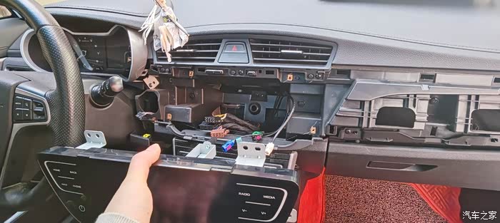 其实也很好拆,原车机就四个螺丝,中控台右边一个螺丝,一键启动下边一个螺丝,其余就是卡扣,稍微一用力,中控台挡板就拆下了。