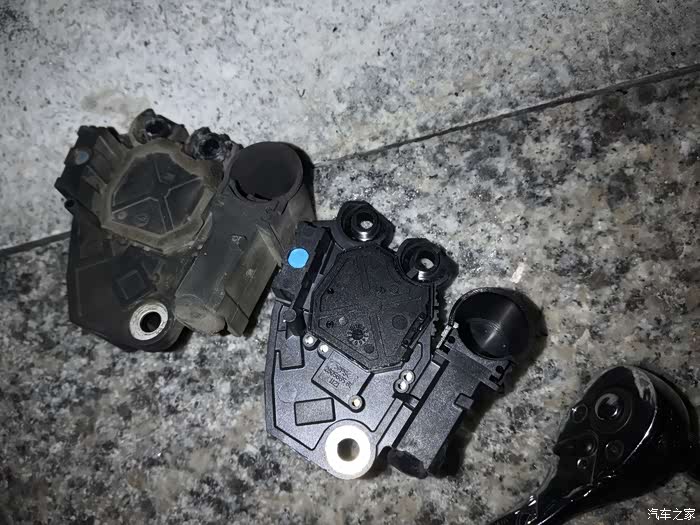 拆盖子还是起子上,小心翼翼地撬出盖子,有一边角还是碎了,不影响使用,塑料件10年老化硬脆了。掀开盖子后,调节器就完整地露出来了,碳刷是藏在调节器里面一体式的,三个8mm的螺丝固定。老的取下新的换上。再原样装回机器。试车,发动机无异响,仪表盘无故障提示。今天跑了30公里,也很顺。下次有空再拿万能表测测电压。