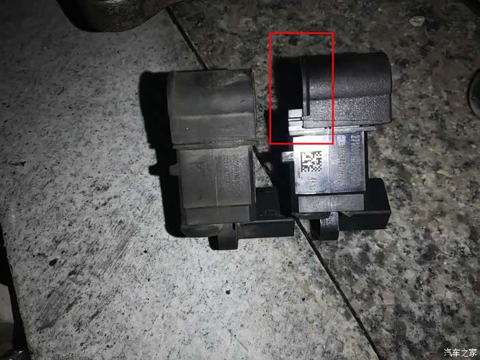 调节器侧面新旧对。比, 注意新调节器 方框部位的缺口,千万不能手贱按齐,一按碳刷就弹出来了,套不上铜套,等着慢慢撬吧,好在去年因为找不到碳刷和卖家咨询过