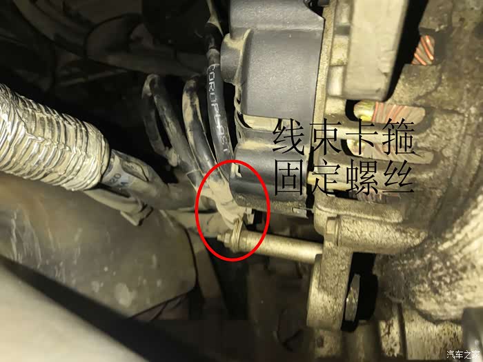 线束是用铁卡箍固定在发电机螺杆上,拆走才能拿掉发电机,7mm套筒可拆。里面的三根线,分别是发电机电源线,发电机信号线(带卡扣接头),空调压缩机线圈控制线(外皮已磨烂,专用汽车耐高温胶布缠上,又排除了一个故障隐患)