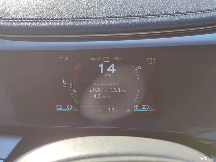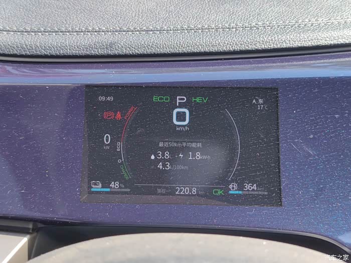 以试试看的心态自己测一下高速的续航到底和表显的续航差多少。今天高速上开的比较快,超了限速一点点,因为赶时间就在符合规定的范围内,把速度来到限速上限。高速上使用的智能保电,高速巡航的时候电量基本上没往下掉,有时候还会看到电量再增加,所以我得结论是智能保电,高速行驶也可以保住电。截止到今天上午,我开了220公里,耗油11升,电量就不输了。百公里油耗在五个多,大家觉得高吗