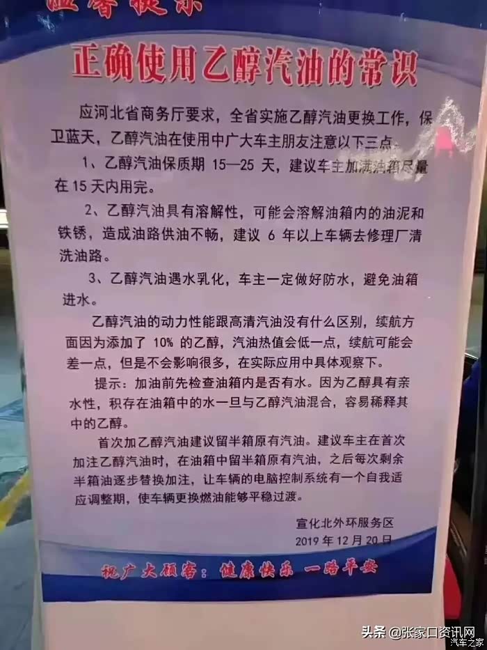 河北开始上乙醇汽油了,保质期半个多月,建议15天用完------