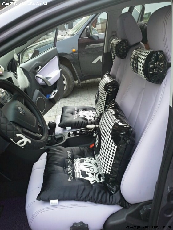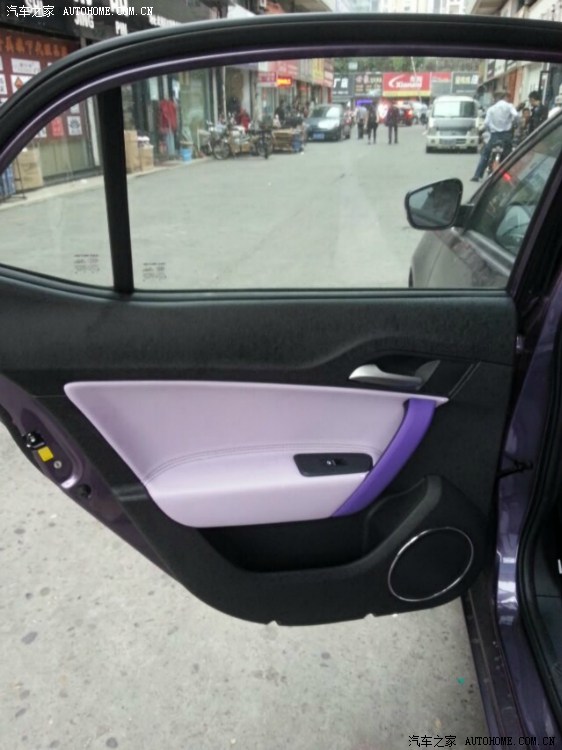 因为阿紫的车身是稍微深谙的紫色,所以在皮椅颜色上我选择了浅紫色,既协调又有层次感。棒子手机拍的,稍微有点色差,很多朋友说看上去像白色,其实她真的是浅紫色