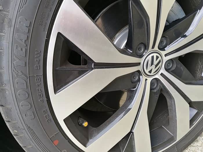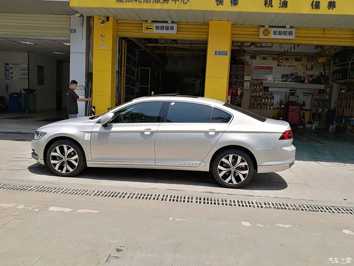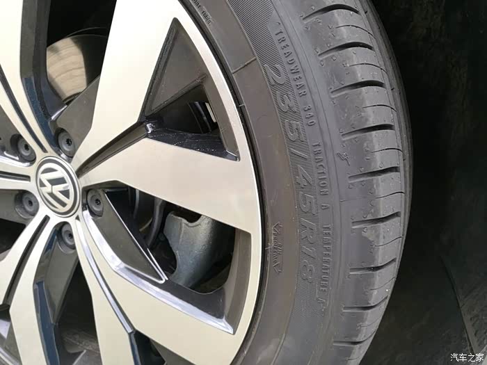 其实开出来的第一件事不是回家而是换18寸轮毂及论坛,新轮毂轮胎就放在帕萨特上面,一出来就直接去轮胎店换上了,这里要特别详细阐述下经过,轮胎轮毂是淘宝购买,原厂轮毂、固特异御乘二代轮胎,目前开了几天了质量没有一点问题,之所以一开出来就换是因为淘宝商家可以高价回收拆下来的轮胎轮毂,但条件是公里数不能超过100公里,否则不回收,所以我就提前购买好18的轮胎轮毂一开出来就换了。
