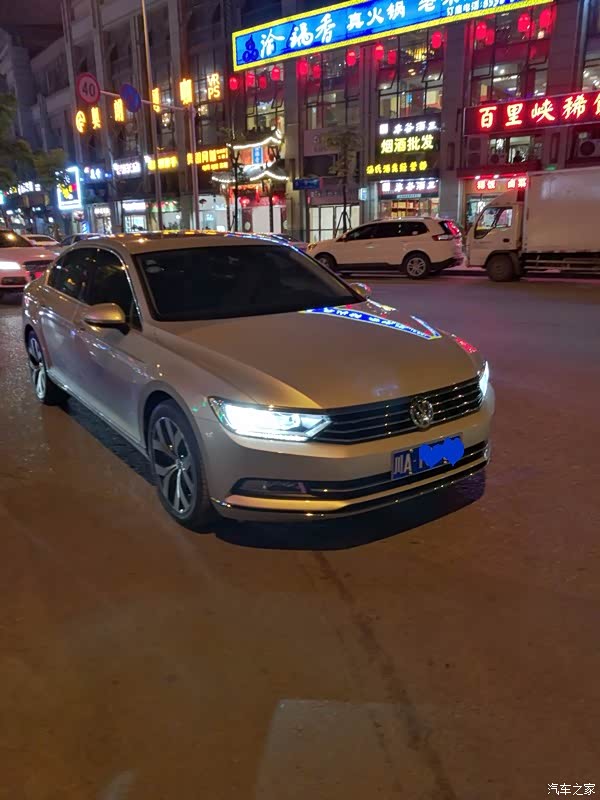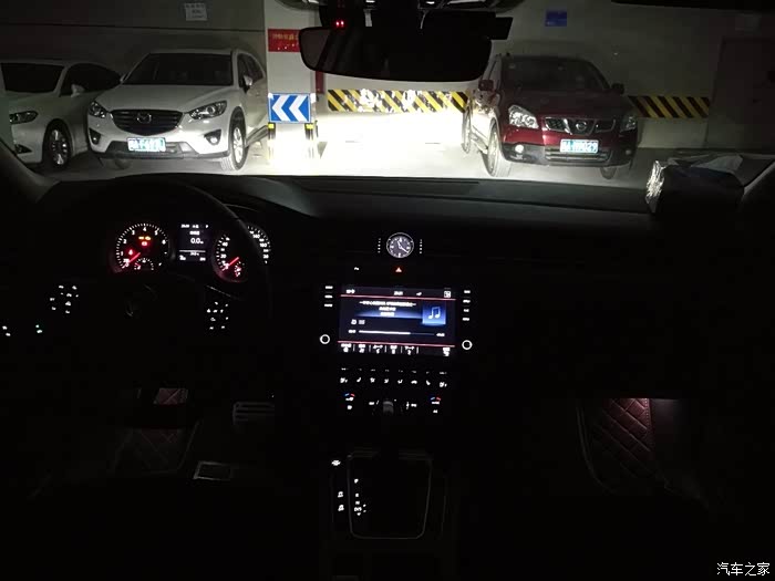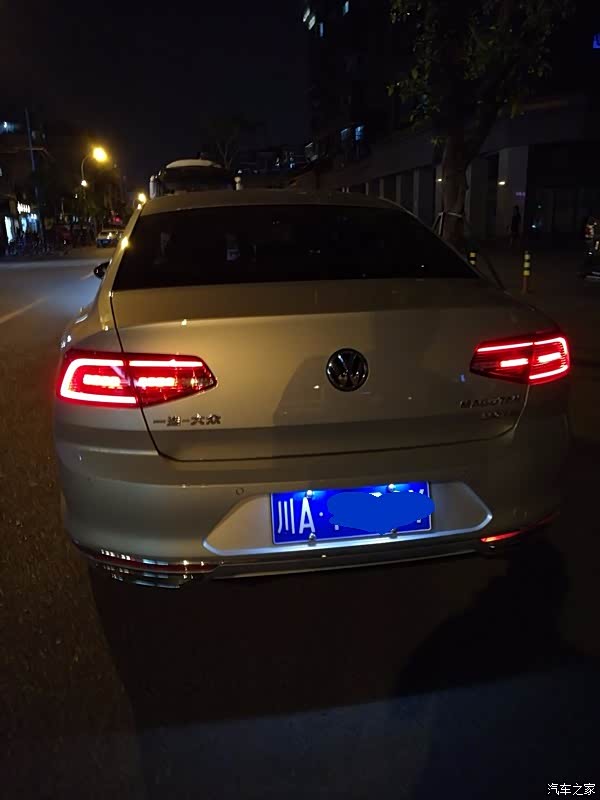第一次回家的路上实拍,漂亮的刹车灯,新车由老婆驾驶,本人开一辆帕萨特在后面护驾