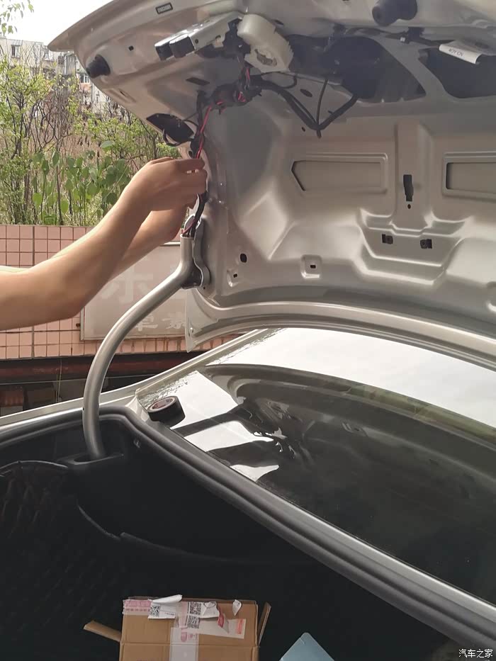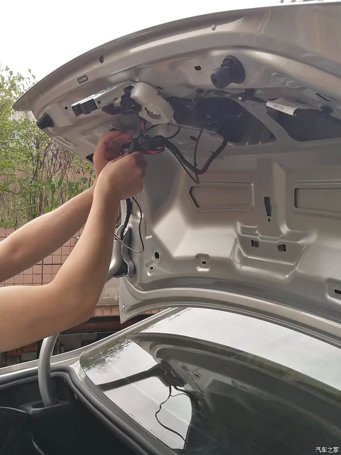 翻标走线中,全部隐藏走线,从后备箱金属弯管出线。