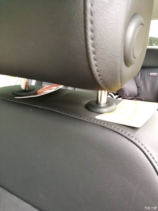 科普图:原车出厂时头枕偏高,当然是针对我这种身材不是太伟岸的这种哈,可以用这种方式将头枕压低,方法如图,两张卡片分别插入头枕下部的空隙里,听到咔的一声证明卡到位,然后用力向下压就可以了。