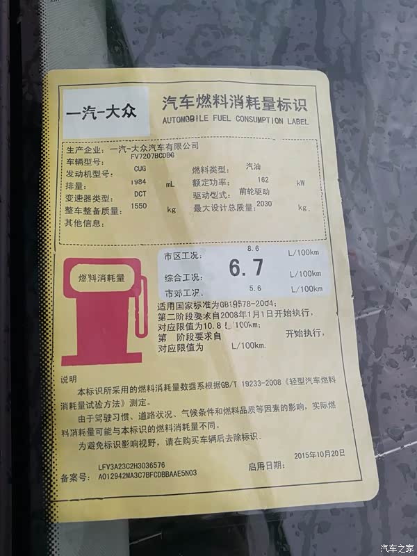 用车感受:新车开了快500公里了,2.0T的排量提速那是杠杠的,给油就有,有推背感,目前没感觉到换挡顿挫,感觉换挡很快很平顺的,噪音在高速超过100后风噪会比较明显一些,发动机隔音还是很好的,基本就只能听到风噪,可能是换了固特异的轮胎的缘故所以路噪不明显,而且高速很稳,磨合期内没有试过更快的速度,所以目前感受就这么多了,废话不多说,直接上图了。