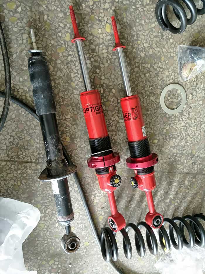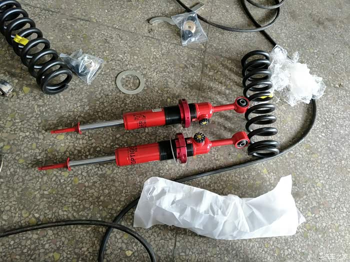拆腾了一天,整整一天才装好,究其原因是拓虎卖家发错了前减弹簧,弹簧太长,多次压簧失败。本意升高2寸,结果落地升高了4.5寸,我上车都困难,最后只能爬上去,真的是爬上去。没办法,只能电话给卖家,卖家对这个结果也没料想到,他说广东是我第一台装,他自己也没数据,叫我先开几天看看有没变化,如果还是降不下来,他再寄一对矮一点的弹簧给我。看到卖家态度很真诚,件也装上了,也只能如此了