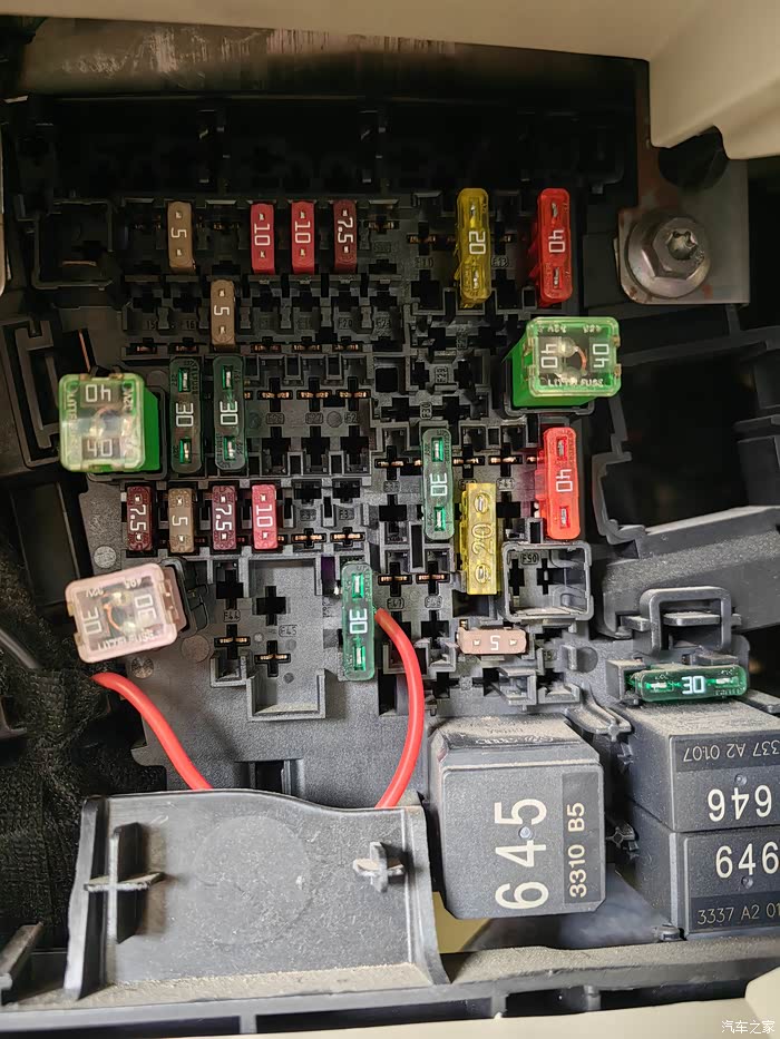 我之前接了一条12V的电出来给手机充电。图上的红线就是我接的,没想到停了两天车电瓶就没有电了,那一定是接错了。想要:“汽车通电接通,关电就断电的线,”各位车友知道怎样接吗?