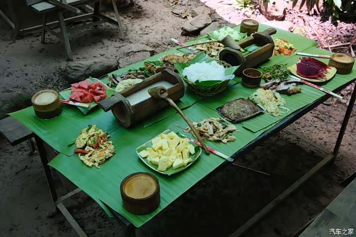 整个“探险”行程大概三个多小时,包括了溯溪、攀岩、徒步,惊险而刺激,也见到了各种各样的植物。午餐时间,森林里面有个哈尼族的阿姨给我们准备了饭菜,芭蕉叶做的桌布,竹子做的碗和勺子,配上各种森林里的水果蔬菜,别有一番风味。
