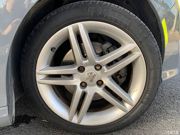 225/45/R17的轮胎,原车是马牌防爆胎,胎噪比较大,后来换成了倍耐力P7普通胎,胎噪小了很多,不过车上没有放备胎的地方。轮毂是原车的,没有改过,已经比较老了,样式普通。