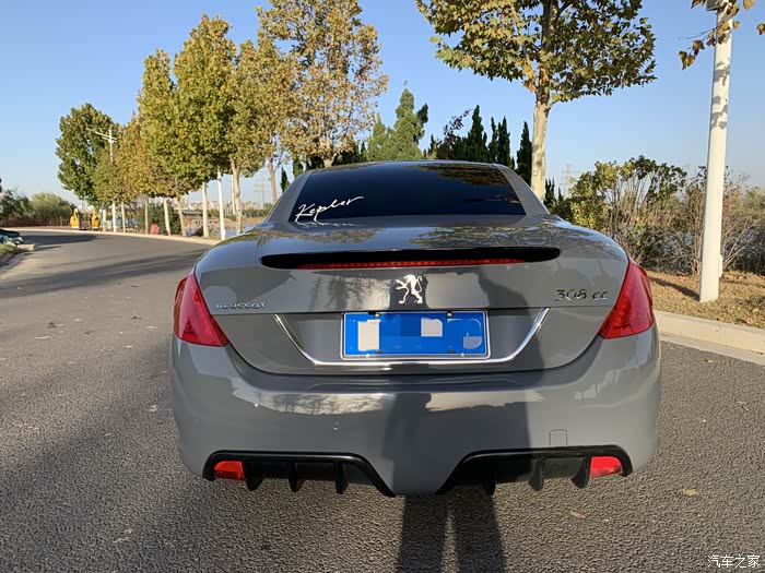正后方。308CC的尾部设计我非常喜欢,下面有扰流板,两个尾灯也很漂亮,转向灯是竖条led的,夜晚看很漂亮