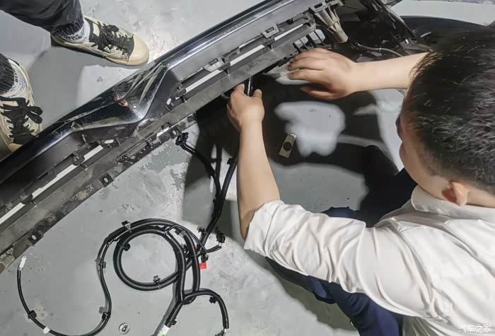 前雷达前雾灯的套件在4S店安装的,这在里要说一下,套件是原厂精品件,不是副厂件哦。安装流程,车上升降机升起来,拆下驾驶位置的前后轮胎。后备箱侧面的挡板拆下,方便接线。从后向前把线束从底盘穿过,固定。另一个师傅同时把前杠的线束接上雷达雾灯和传感器。线束安装完毕,前护杠安装上,左侧轮子也安装好。打开驾驶位置的保险盒连接,调试。联系厂家,远程开通功能即可。自从有了前雷达开车放心多了,跟车也不用离得老远了每念兮,在小区里停车也不用下来再看距离了。有了前雾灯最直接的就是,转弯的时候能看到你以前看不到的路面,增加你的视野,更安全。