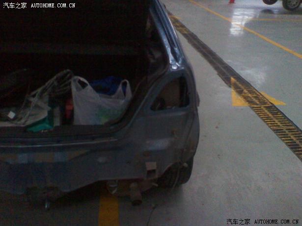 18.拆完后杠,露出光光的屁股,没防撞梁,现在已经可以订购并焊接了,就是看那单薄的支架……有没有那个梁真不重要了