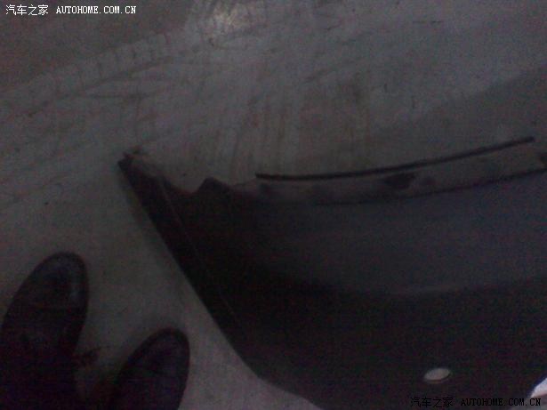16.拆下的后杠,左后角的挂扣已经折了,左前挂扣变形