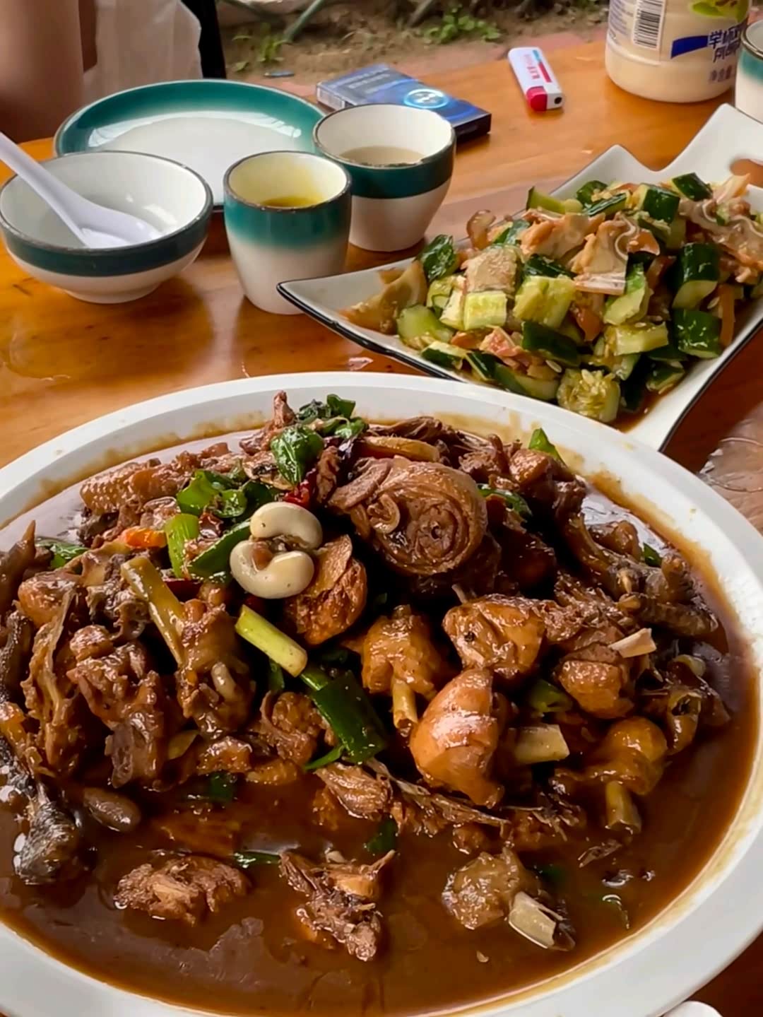 中午12点,肚子饿得咕咕叫,便导航去了笨鸡小跑总店吃临沂炒鸡。到了店里,点了特色的炒鸡、菠菜焦香小肉丸、四大缸和花菜的套餐,一共175元。等菜的时候,我在车里稍作休息,奕炫MAX的空调制冷很快,车内凉爽舒适。菜上桌后,香味扑鼻而来,炒鸡点的不辣的半只,鸡肉鲜嫩入味,味道很不错,3 - 4个人吃半只完全够了。其他几道菜也各有特色,没有踩坑,吃得十分满足。