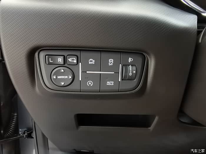 这里左边是,后视镜电动调节,后视视镜自动折叠,上面是360行车计录仪,防侧滑开关,下面的是自动启停,自动驻车功能开关,右边的是大灯高低调节功能。