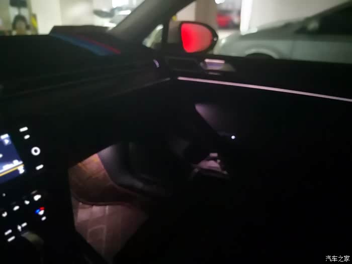 到了夜里,侧门的氛围灯感觉还是很不错,唯一不理解的是为什么中控上没有氛围灯呢?