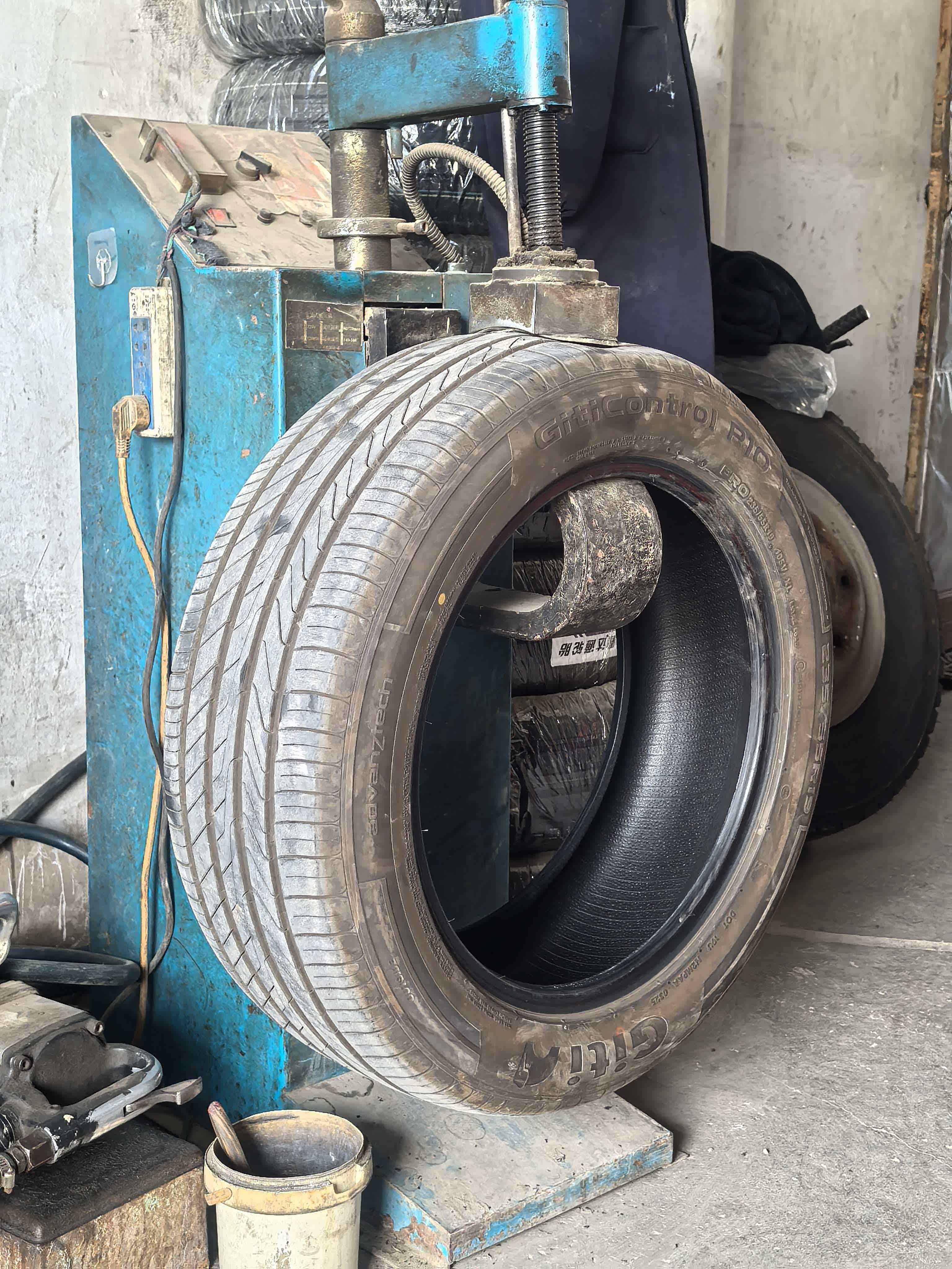 新车到现在已经补了4次了,我选择了热胶补胎,这个比贴片好多了价格也就比贴片贵了10元,40元一次,160元就这样没了