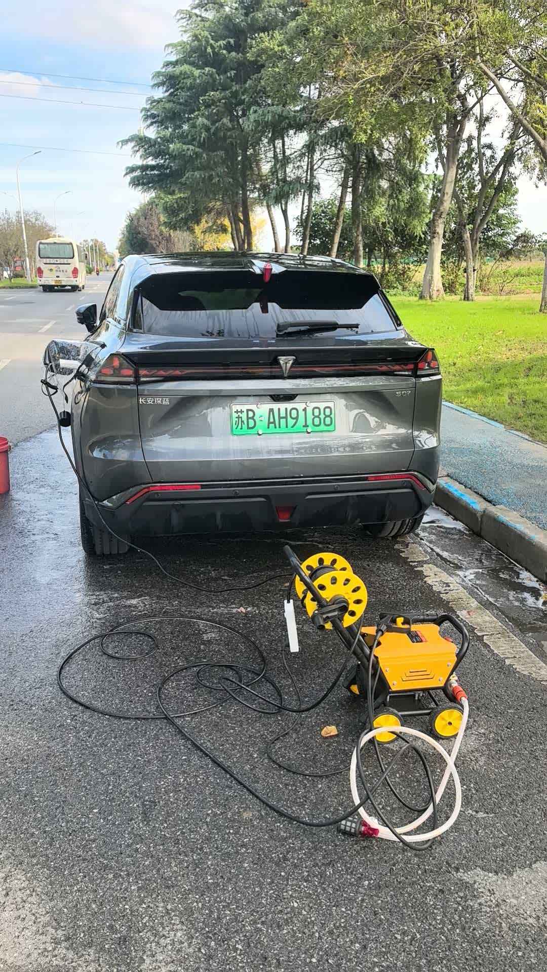 新车强迫症脏了就要洗,然后买了个220V洗车机,转换拖线板用起来方便,这是电车的方便,随便找个有小河的地方就能开启洗刷刷模式。