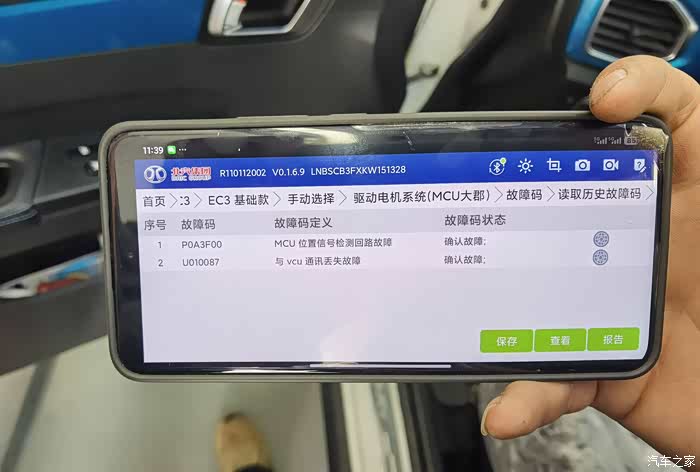 ec3行驶途中突然失去动力,电机故障和整车故障灯亮起。