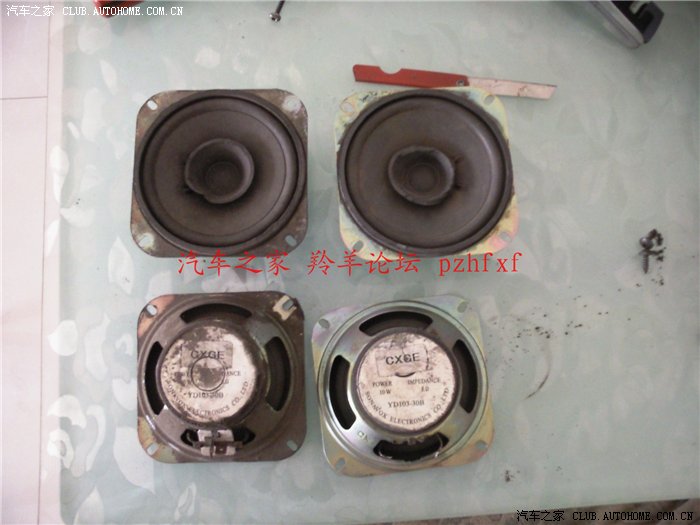 正好家里闲置了一对音箱,于是决定把家里音箱的喇叭换到羊身上去。之前也曾查阅过资料,说什么车载喇叭的阻抗是4欧的,家用的是8欧的,用在车上不匹配,这个问题困扰了我很久很久,再加上一直没有时间去摆弄,这个事情就搁置下来了。