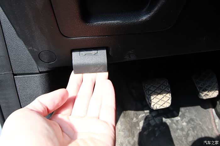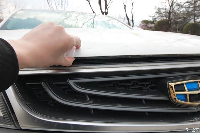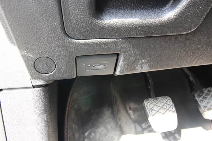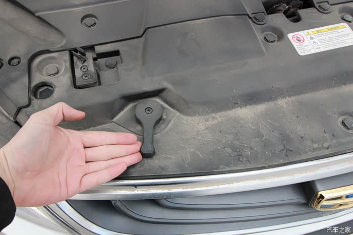 大约在这个位置,人对着车头,左手边这一侧,伸进手去,左右挪动以下会感受到一个东西,然后往右侧一推,右手顺势抬起引擎盖。