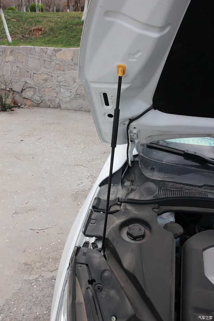 抬起引擎盖后,用支撑杆撑住,一定要撑好了,否则,引擎盖砸头上,可不是闹着玩的。